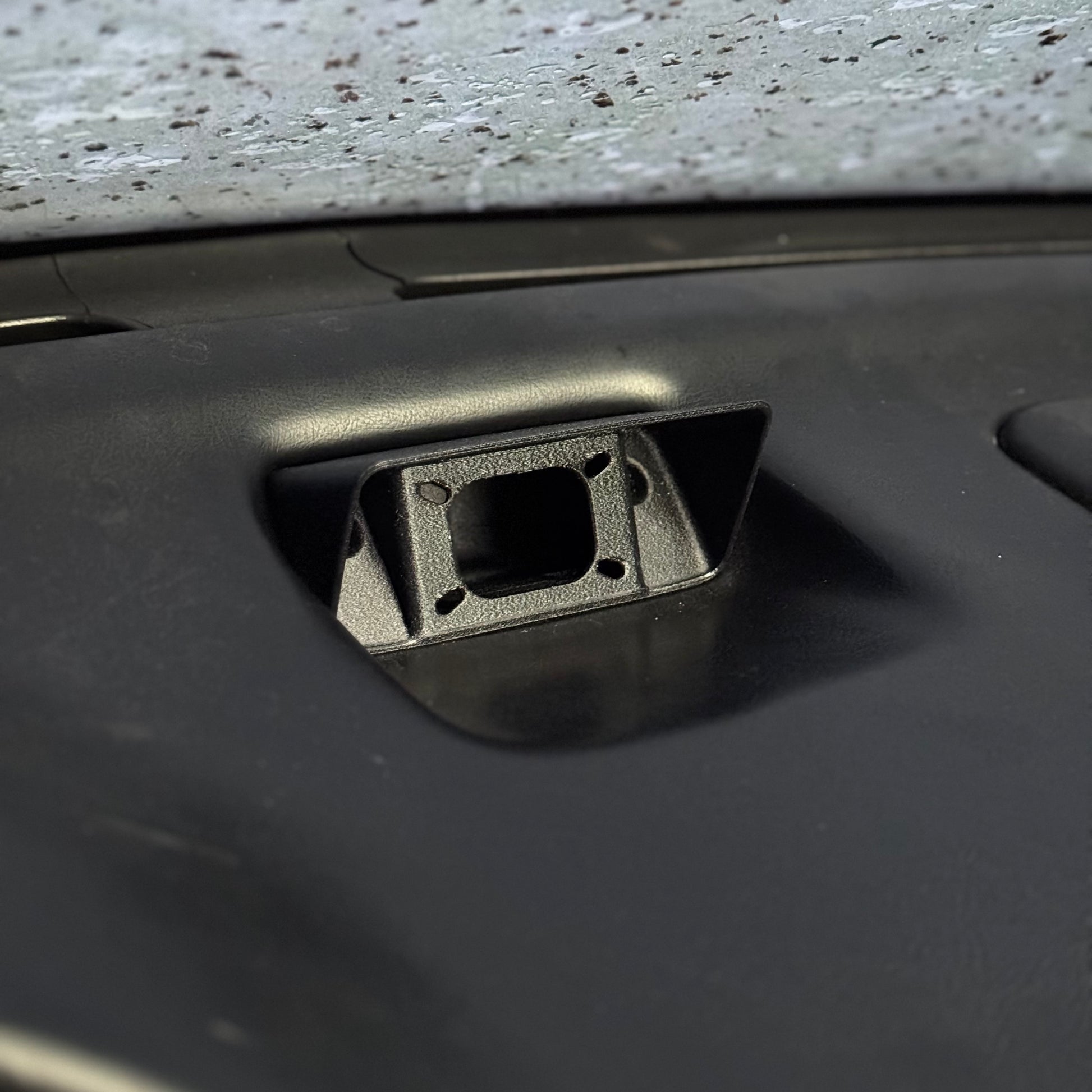 The mount can now be installed into the dash, and as the screws on either side are tightened the tabs will flip out to the sides and clamp against the dash. Make sure to loosely tighten both sides first, to ensure the fingers are out and in position to grab the dash. (If you tighten one side completely without the other, the mount will clamp and rotate causing it to only engage on one side. This will cause the un tightened side to pop out and not grab at all)